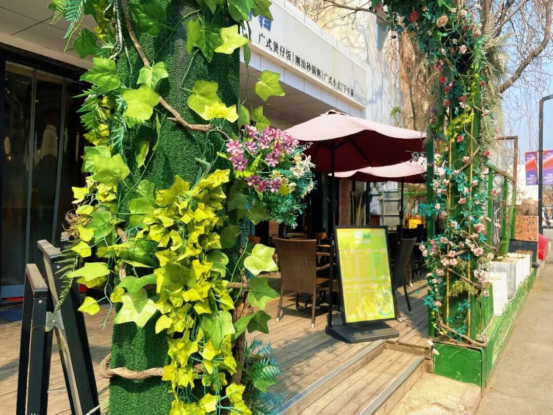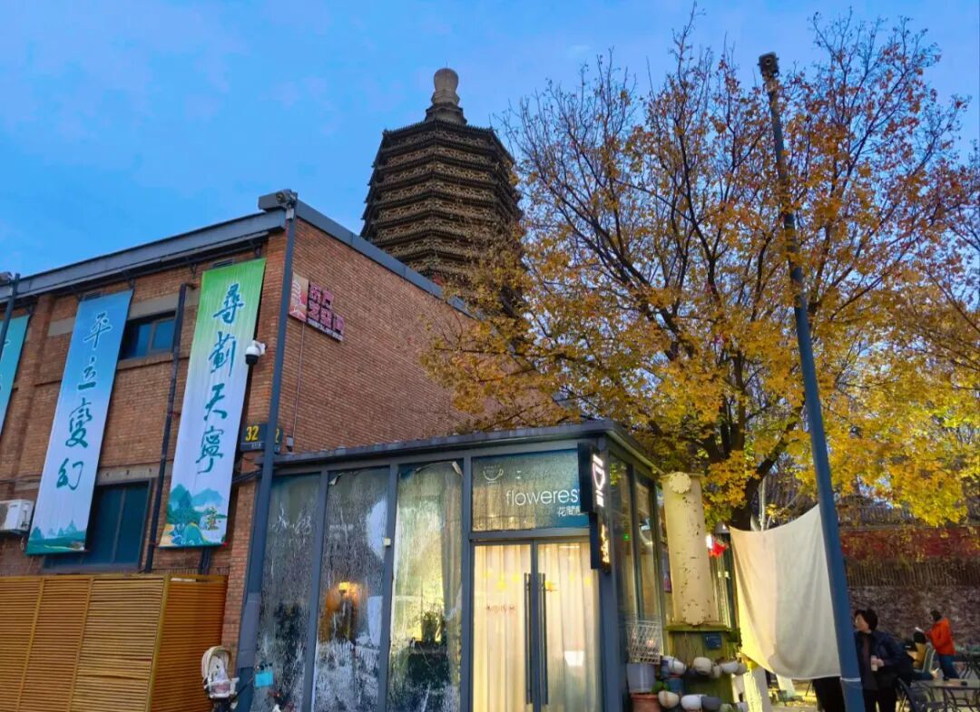 • 花间驻咖啡馆(观宁阁露台):绝佳赏塔点位,坐在露台喝咖啡,平视天宁寺塔砖雕细节,阳光洒下时,古塔、烟囱、咖啡香氛围感拉满。
