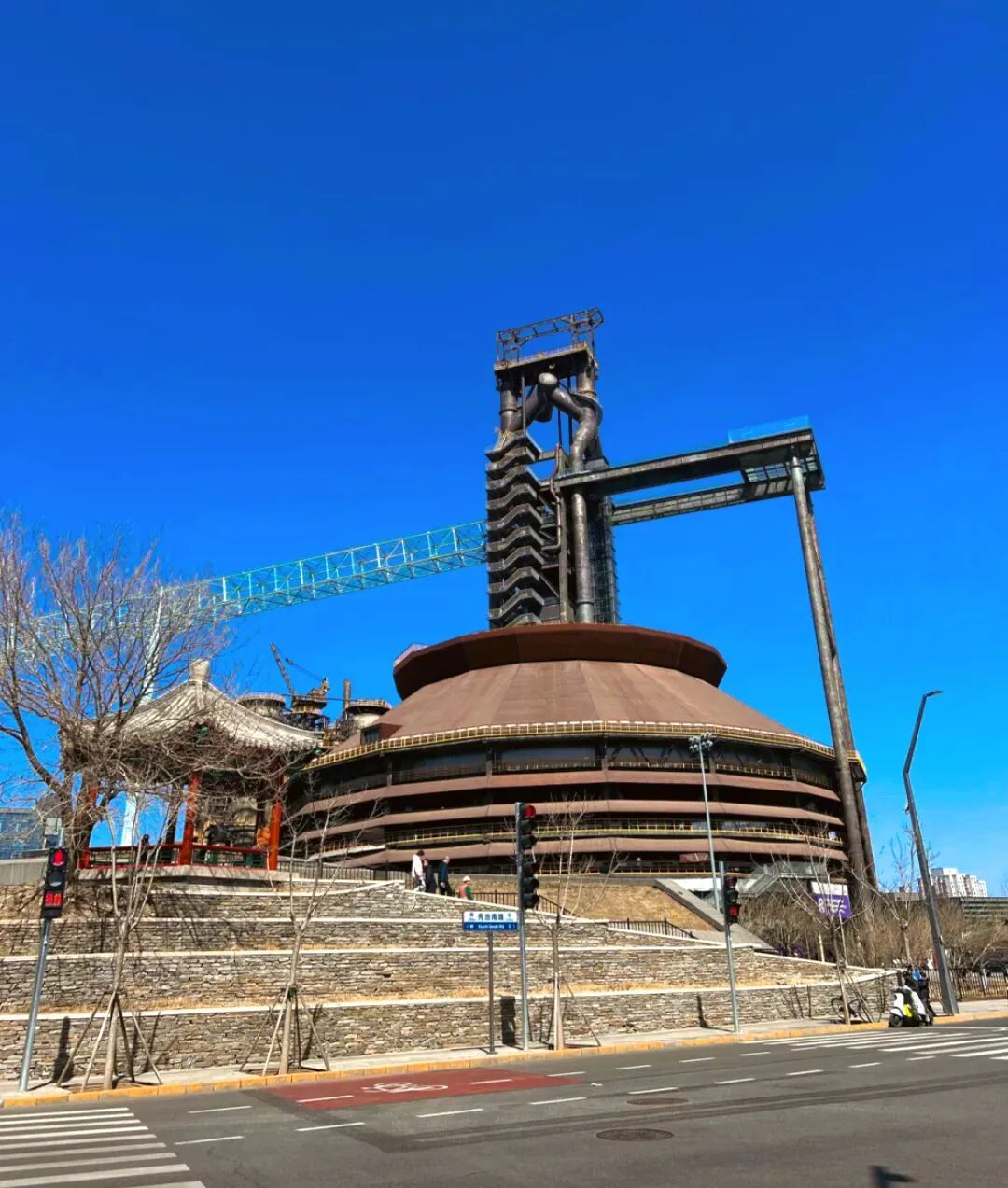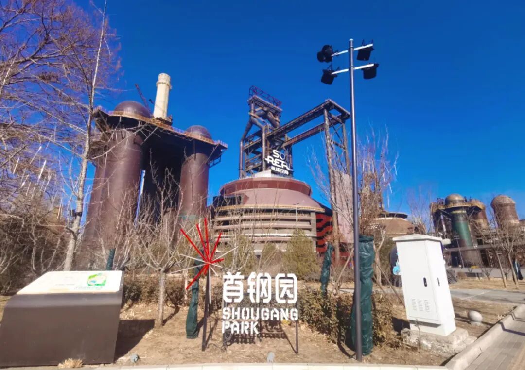 首钢园是北京城市更新的典范,前身是百年首钢老厂区,保留了巨大的高炉、冷却塔、转运站、冬奥滑雪大跳台“雪飞天”,工业遗存规模宏大,赛博朋克感拉满。