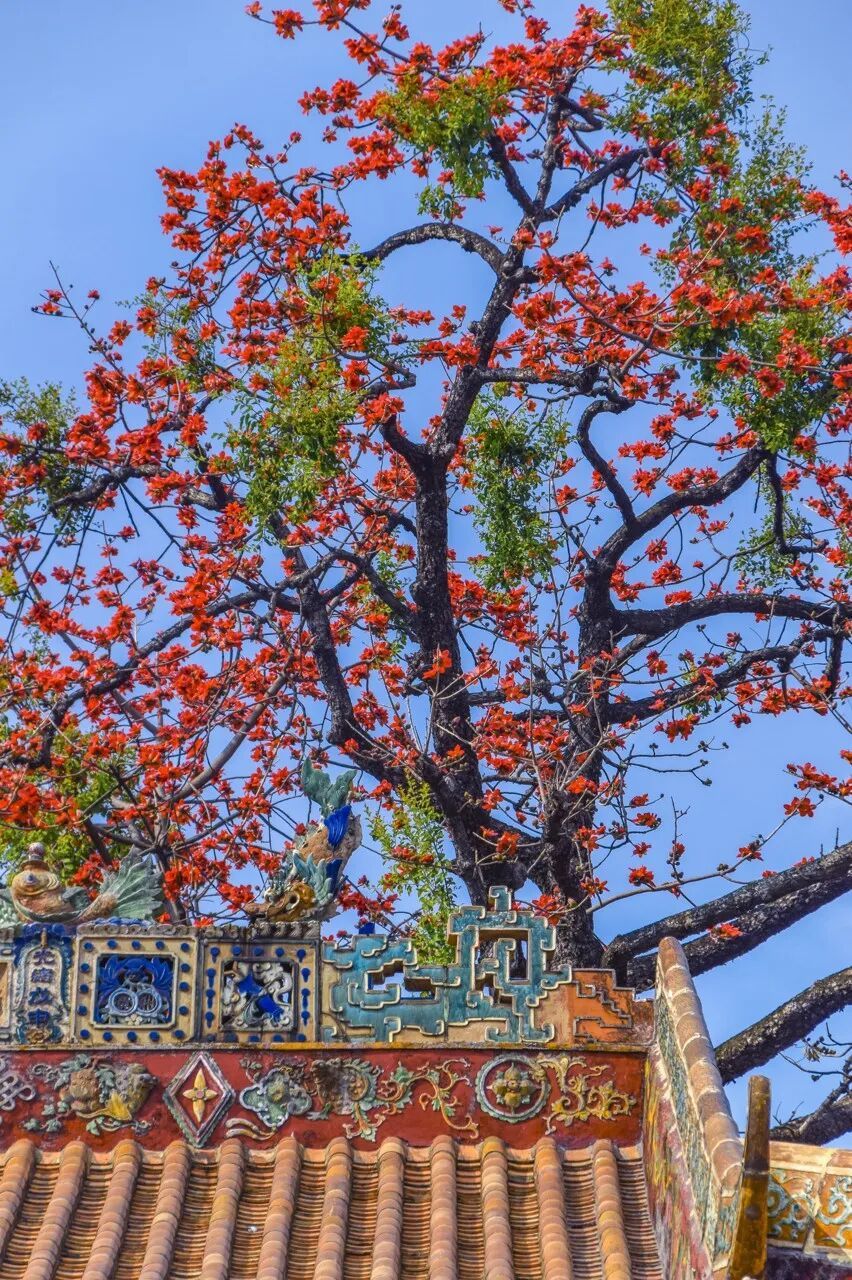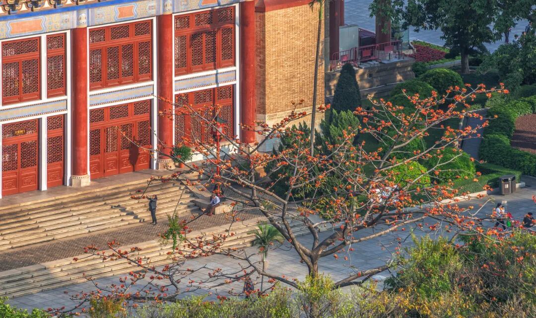 中山纪念堂前的“木棉王”历经三百余载风雨,依旧在春日里繁花满枝,火红的花瓣与古建的琉璃瓦相映,尽显千年商都的磅礴气韵。