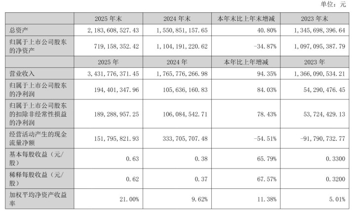 若羽臣(证券代码:003010)日前发布截至2025年12月31日的财报。财报显示,若羽臣2025年营收34.3亿,较上年同期的17.66亿增长94.35%;